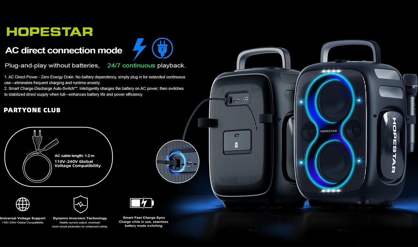 - جمعبندی فنی: Hopestar PartyOne Club 650W یک راهحل قدرتمند، مستقل و مقاوم برای مهمانیهای بزرگ در فضای باز است. اگر به دنبال دستگاهی با صدای بلند، باتری با دوام بسیار بالا و قابلیت تعویض، مقاومت در برابر آب و امکانات کامل Plug & Play هستید، این اسپیکر انتخاب بسیار خوبی است. با این حال، وزن حدود ۱۱.۵ کیلوگرمی آن برای حملونقل مکرر نیاز به برنامهریزی دارد.