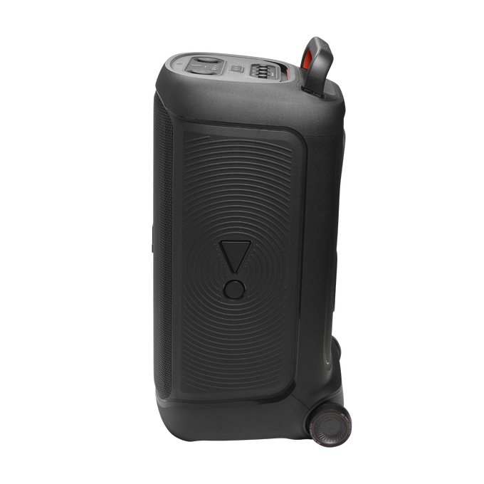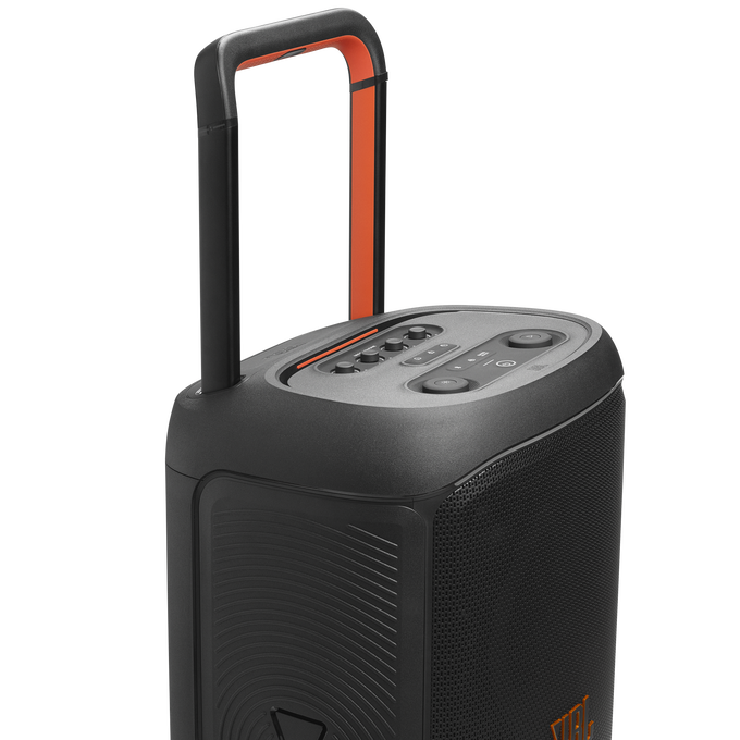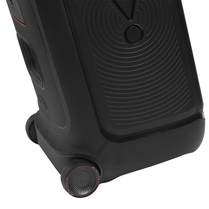 - قابل حمل با چرخ و دسته: طراحی این اسپیکر به همراه چرخهای مقاوم و یک دسته تلسکوپی، جابجایی این اسپیکر ۲۵.۵ کیلوگرمی را بین پارک، ساحل یا مهمانیهای مختلف به کاری آسان تبدیل میکند.