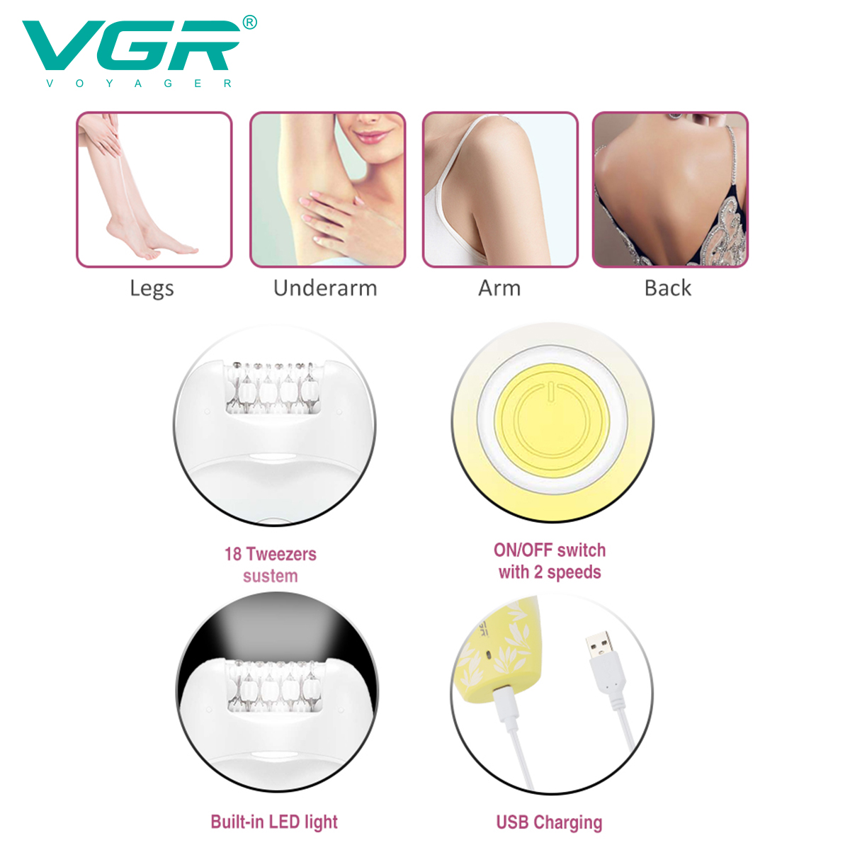 | نام محصول | اپیلاتور حرفهای زنانه VGR مدل V-738 |